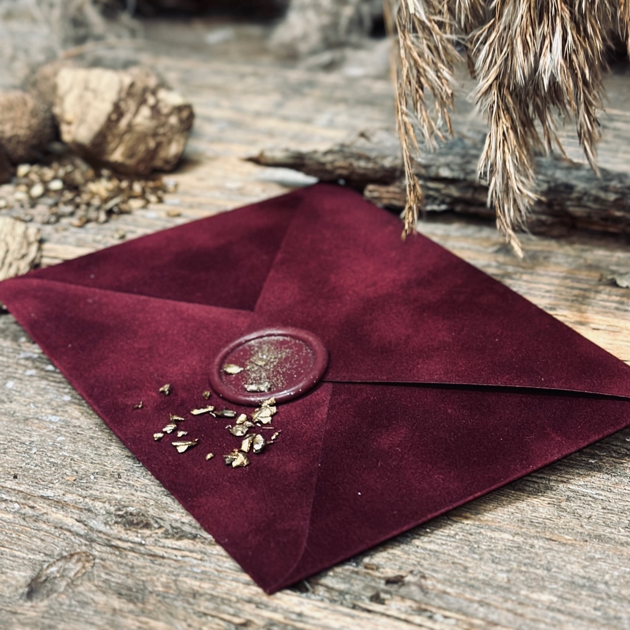 Velvet envelopes as elegant cash gift wrapping, greeting cards.