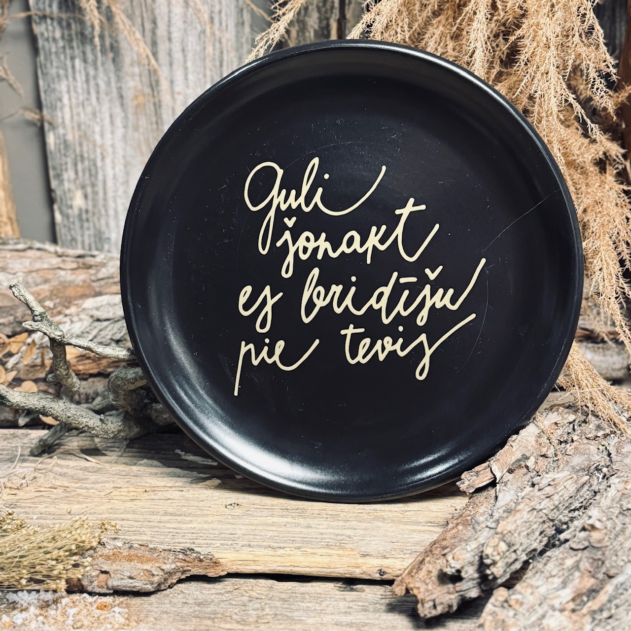 Vārdi veido ne tikai stāstu, tie var raisīt sajūtas, iedvesmu, siltumu, mīlestību. Katrs šķīvis nes vēstījumu vai mīļu domu kādam tuvam cilvēkam, tā būs lieliska dāvana Viņam / Viņai.