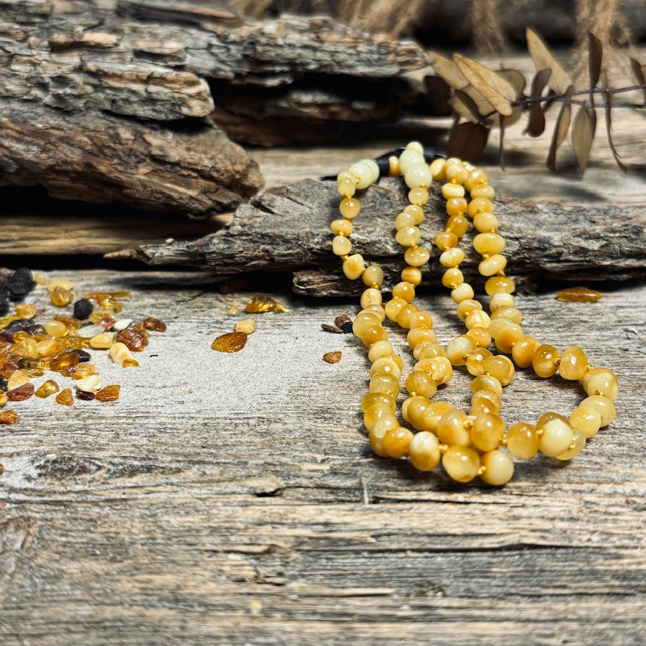 Dzintars ir dabīgs atsāpinātājs, un, ja ķermenis ar to saskaras, dzintarskābe uzsūcas caur ādu bērna organismā, palīdzot nesāpīgāk un mierīgāk pārciest zobiņu nākšanas laiku.