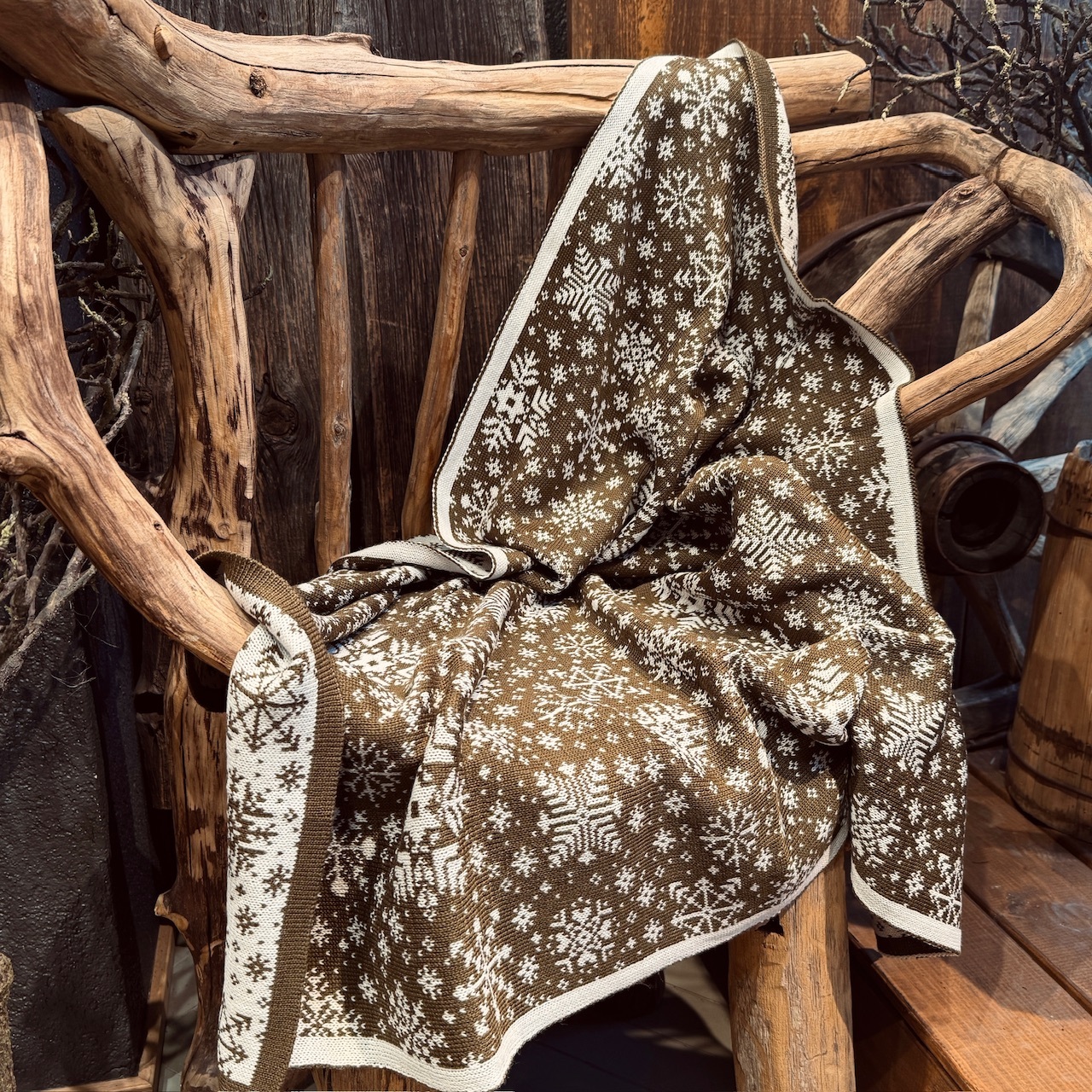 Valkājams no abām pusēm gan kā plecu lakats, gan kā šalle.