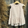 Kleitas dizains viegls un brīvs, kleitas apakšā un plecos volāns ar baltām pumpiņām.