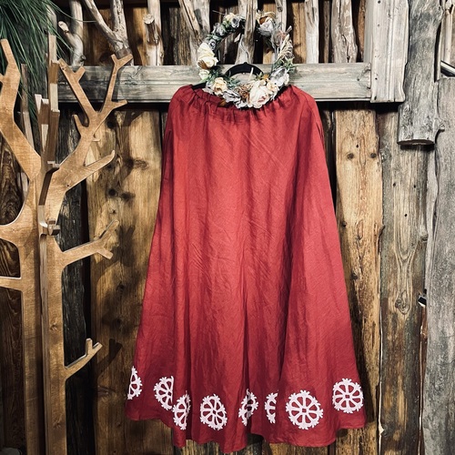 Pussaules griezuma 100% lina brunči ar slēptajām kabatām un Saules zīmes apdruku.
