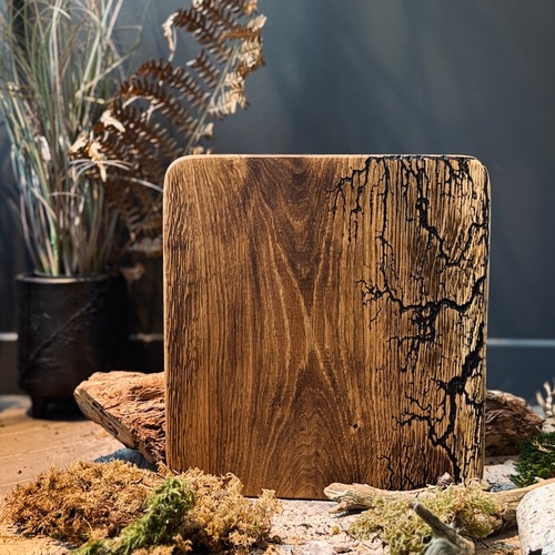 Koka dēlis, kas ir dedzināts ar elektrības palīdzību.