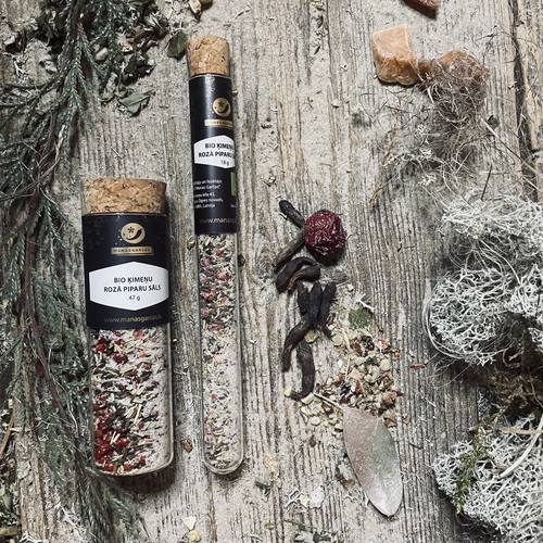 Īpaši aromātisks sāls – garšvielu maisījums, kuru esam iecienījuši paši, kā arī mūsu klienti. Latviskā, ierastā ķimeņu garša lieliski sader ar rozmarīna un rozā piparu garšas niansēm, kopā radot patiešām baudāmu piedevu dažādiem ēdieniem.