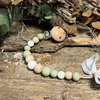 Tas veidots no silikona un koka krellītēm, neilona aukliņas un ir ar koka klipsi.