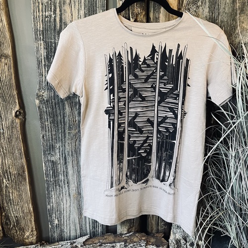 Krekls Pērkons drukāts sietspiedes tehnikā uz pašu ražota T- krekla, kas šūts no 100% kokvilnas auduma.