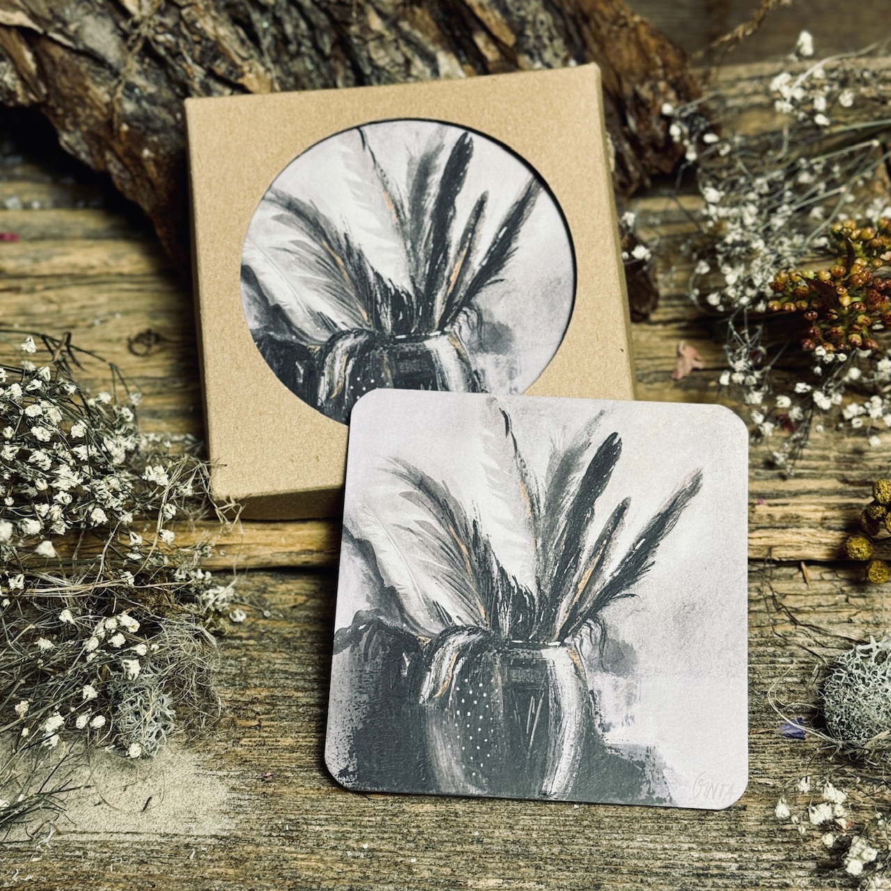 Kartona palikņi glāzēm, noapaļoti stūri, abpusēja apdruka un mitruma aizsargslānis