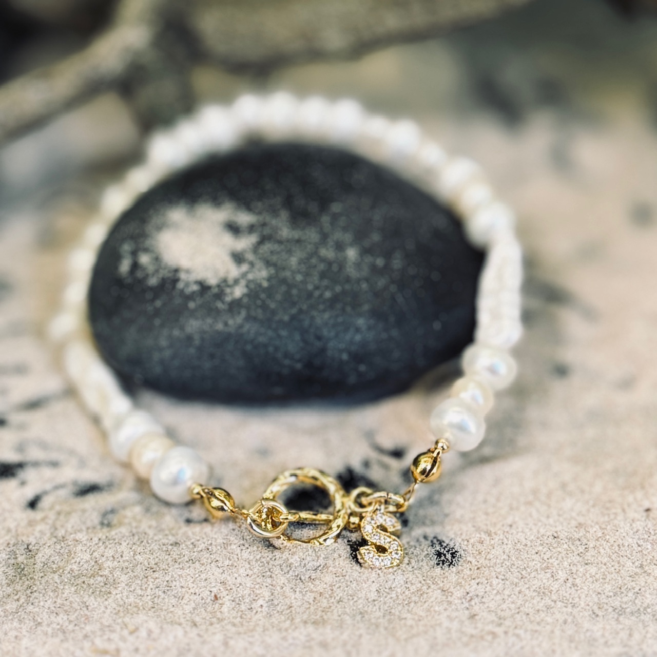 Pērļu rokassprādze ar apzeltītu iniciāli BURTS