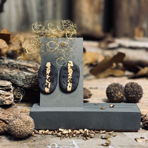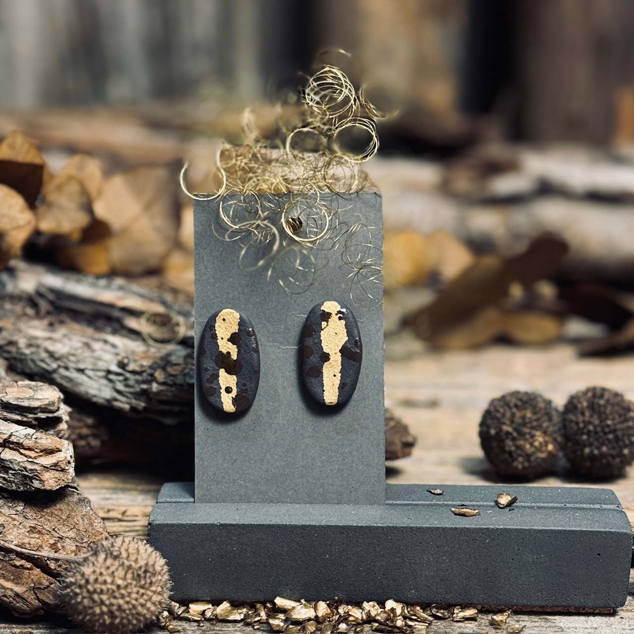 Tumši pelēki porcelāna auskari ZELTA LĀSE