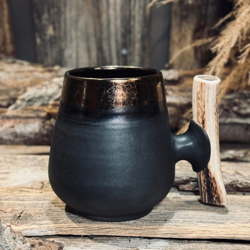 Melnas keramikas kausi BRONZA ar brieža ragu