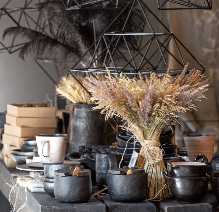 Melnās keramikas darbi tiek radīti ar rokām, un savu tumšo toni iegūst dedzināšanas beigu posmā, kad pēc 12 stundu “atpūtas” 1000 grādu karstumā, ceplis tiek kārtīgi aizvākots, procesā rodas dūmi un māla trauki tiek piesātināti ar oglekli. Šajā procesā trauki arī iegūst savu izturību.